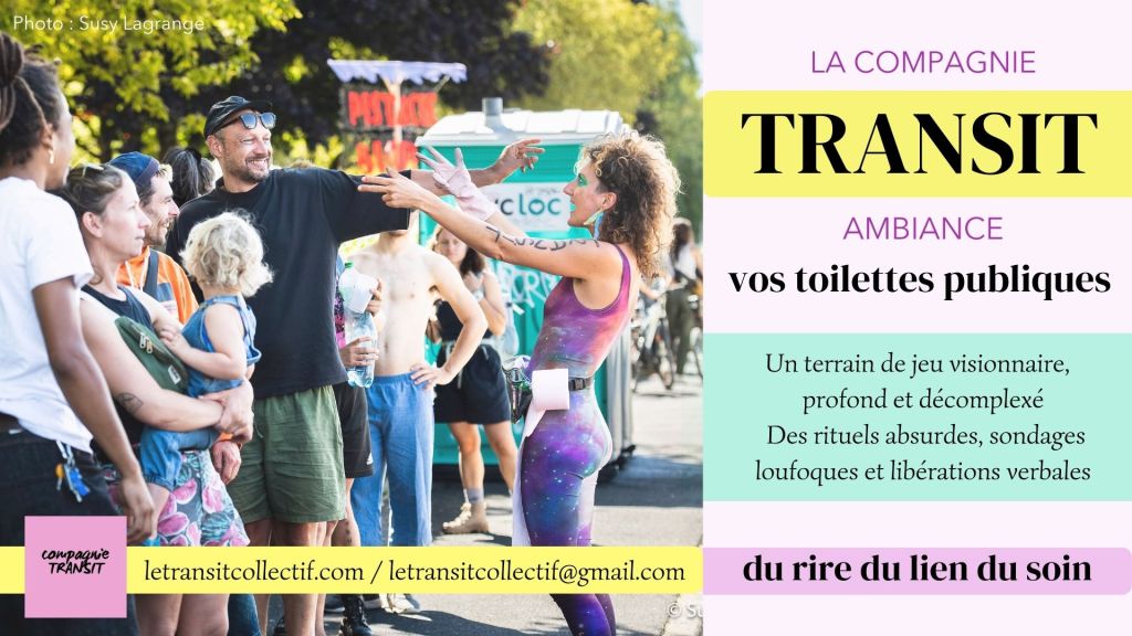 Entre sondages collectifs à la volée (« alors, qui a été à la selle ce matin ? » « qui a le transit perturbé en ce moment ? » etc), conversations plus intimes (« comment ça va votre transit émotionnel aujourd’hui ? » « qu’est-ce que vous auriez envie de déposer pour vous sentir mieux ? ») et petits rituels loufoques (écrire ses chieries, chorégraphies pour ouvrir les sphincters, bénédictions burlesques, formules magiques) pour aider la bonne circulation de leurs selles et de leurs chieries, TRANSIT transforme de façon inattendue le passage aux toilettes en un moment non seulement vivant et joyeux mais aussi libérateur et engagé.